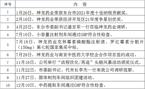 為回顧過去一年的發展與收獲,記錄企業砥礪奮進的歷史與成就,神龍藥業于2月上旬發起“2022年度十大事件”征集活動。公司各車間部門共140名員工參與評選投票。